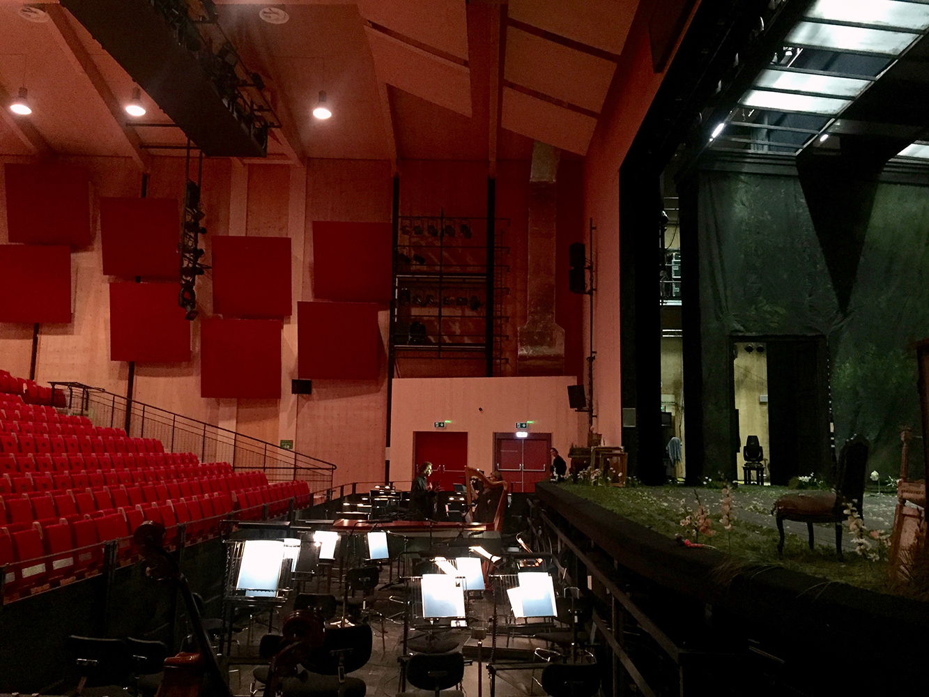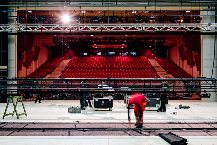 The Opéra des Nations – an all-wood temporary building – replaces the Geneva Grand Théâtre during its renovation from 2016 to 2018. The former Théâtre éphémère of the Comédie-Française has been transformed and adapted to opera, ballets and recitals: enlargement of the hall by 8 m, increasing the seat count to 1 118; addition of an orchestra pit; acoustic optimization with reflectors installed above the orchestra pit and on the sidewalls of the hall.